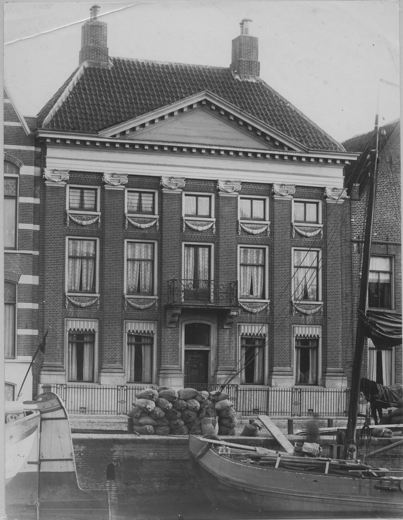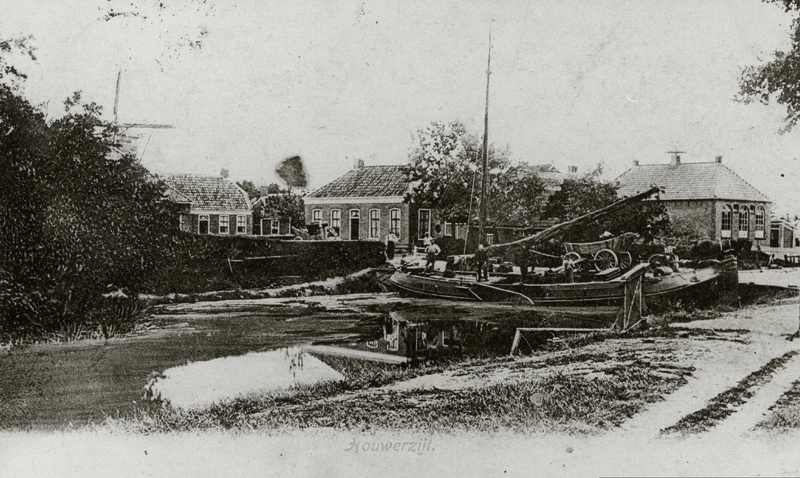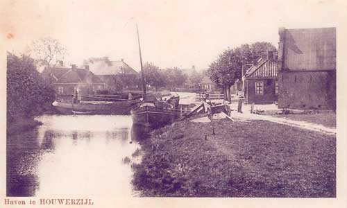 ![]() Het schip in de haven van Houwerzijl, toen nog in gebruik als beurtscheepje. Rechts ligt het motorschip dat Van Huis rond 1912 aanschafte en vanaf 1919 was overgenomen door Brand Slik. |