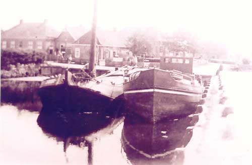 Links, aan de Ate Gracht in Friesland, nabij Sandfirden (2007).Rechts het schip rond 1948, onder de naam 'Jarro'. De locatie is waarschijnlijk een sluis de NO-polder in. Uit deze tijd stamt de witte kleur. Op de foto is goed te zien dat achter de opbouw/roef nog een (origineel?) klein roefje zit, met het ingangsluik aan bakboord. | ![]() |